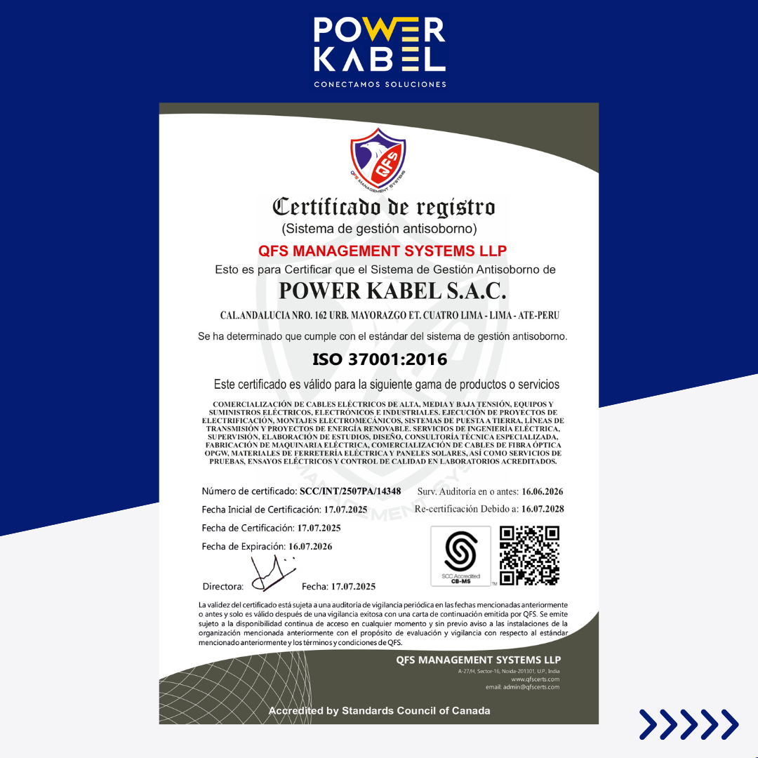 "Contamos con estándares de calidad, respaldo tecnológico, laboratorios acreditados, marca patentada “POWER KABEL” por el Indecopi, a fin de abastecer la demanda del mercado de manera rápida, flexible y competitiva"